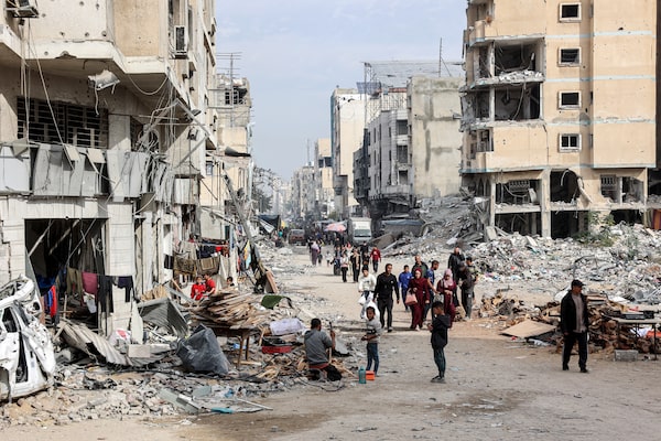 People walk past collapsed and damaged buildings along a street in Gaza City, on Dec. 11, 2024.OMAR AL-QATTAA/AFP/Getty Images