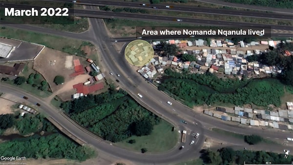 It was like a disaster movie, Nqanula says, with containers from nearby shops caught in the current and slamming into dwellings. Then there was the final terrifying escape as she and her neighbors formed a human chain to cross a nearby highway that was disappearing under the fast-flowing water.
