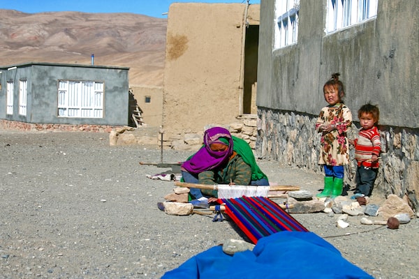 An Afghan woman weaves a carpet at her house in Qarghanato village on the outskirts of Bamiyan province on Nov. 6.MOHAMMAD FAISAL NAWEED/AFP/Getty Images