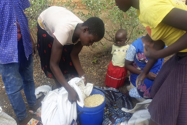 A woman receives maize meal at a United Nations World Food Programme distribution centre in Neno district, southern Malawi on March 24.Kenneth Jali/The Associated Press