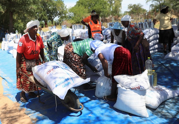 Villagers collect their monthly allocations of food aid provided by the World Food Program in Mumijo, Buhera district, east of the capital Harare, Zimbabwe on March 16.Philimon Bulawayo/Reuters