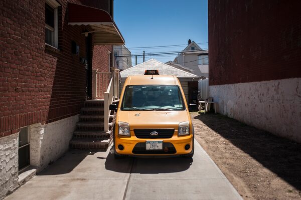 The yellow taxi that was driven by Helen Ochisor and her husband Nicanor, parked outside their Queens home in New York on April 20, 2018.KHOLOOD EID/The New York Times News Service