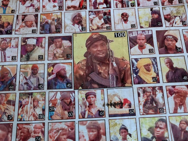 A poster placed outside the Maiduguri Police Bomb Disposal Squad base, showing the most wanted Boko Haram members in Maiduguri, Nigeria, July 15, 2019.Jonathan Torgovnik ©/Supplied