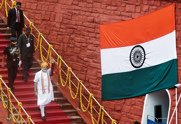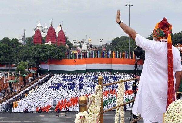Mr. Modi waves from New Delhi's Red Fort at his Independence Day speech.INDIAN PRESS INFORMATION BUREAU/AFP/Getty Images