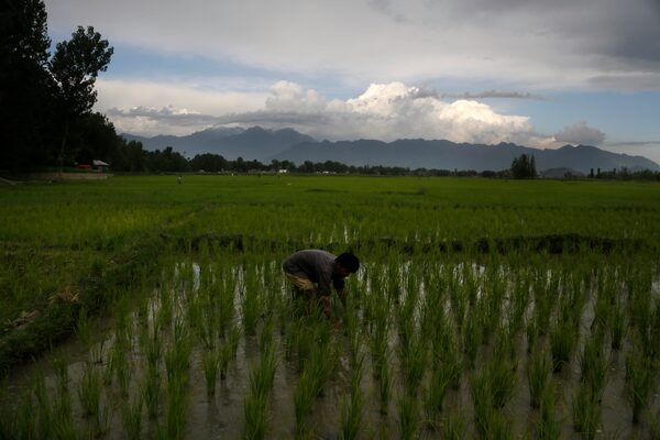 A farmer works in a field on the outskirts of Srinagar. Many in Kashmir earn their livelihoods through agriculture. Under the old constitutional rules for Kashmir, outsiders were not allowed to buy land there, but the end of those restrictions has led to fears of an influx to the Muslim-majority region from the rest of Hindu-majority India.Mukhtar Khan/The Associated Press