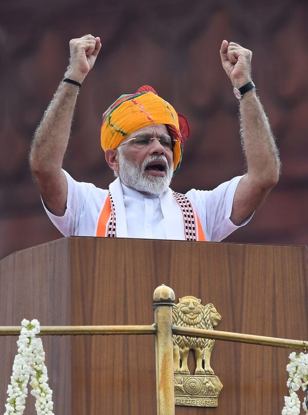 Mr. Modi gives an Independence Day speech at New Delhi's Red Fort.Prakash Singh/AFP/Getty Images