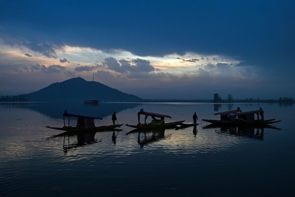 Kashmiri boatmen paddle out on the Dal Lake after sunset on April 5. Kashmir's mountain vistas and rivers make it a popular tourist destination, though the recent military crackdown led thousands of visitors to leave.TAUSEEF MUSTAFA/AFP/Getty Images