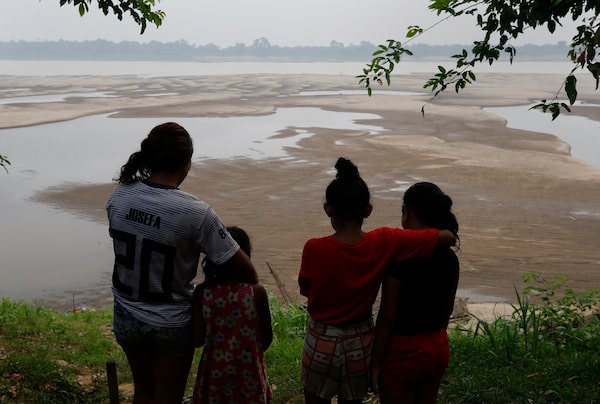 People look out at the Madeira River, a tributary of the Amazon River, amid a drought in Humaita, Amazonas state, Brazil, on Sept. 7, 2024.Edmar Barros/The Associated Press