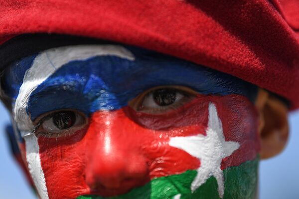 An Azerbaijani child with face painted in the colours of the national flag takes part in a demonstration in Istanbul on Oct. 4.OZAN KOSE/AFP via Getty Images/AFP/Getty Images