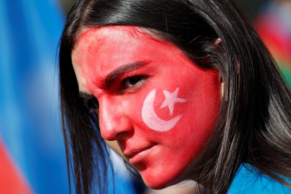 A demonstrator in Istanbul wears the colours of the Turkish flag at a protest against Armenia on Oct. 4.Murad Sezer/Reuters/Reuters
