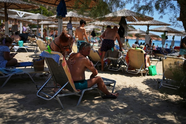 Greek tourists at Avlaki Beach, located an hour north of Athens, Greece, on Aug. 7. Day trips have replaced weeklong vacations for many Greeks.Thanassis Stavrakis/The Associated Press