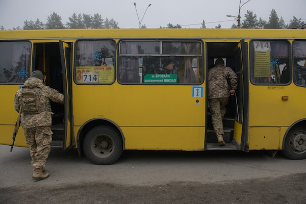 Standing on the side of a highway on a chilly day in March, Mr. Ovramenko, 32, told The Globe and Mail that he doesn’t think it’s right for people to be issued these papers while they’re on a bus on their way to work. He said he has a few concerns about joining the army, but a big one is his family.