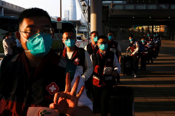 Medical workers from China arrive at Shenzhen Bay Port during the COVID-19 pandemic in Hong Kong, on March 14.TYRONE SIU/Reuters