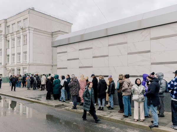 Long lines of voters formed outside polling stations in major Russian cities during the presidential election on Sunday, in what opposition figures portrayed as a striking protest against a rubber-stamp process that is certain to keep Vladimir Putin in power.NANNA HEITMANN/The New York Times News Service