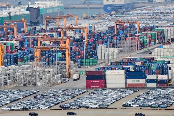 Cranes, vehicles and shipping containers at a port in Pyeongtaek, South Korea, in April, 2025. U.S. President Donald Trump on Monday told Japan and South Korea they would face 25 per cent tariffs.Ahn Young-joon/The Associated Press