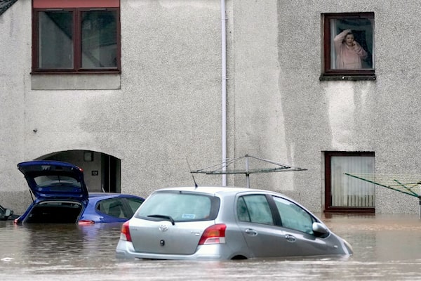 A car sits in flood water in Brechin, Scotland, on Oct. 20.Andrew Milligan/The Associated Press
