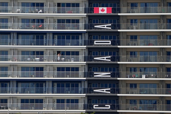 A banner hangs from Canada team apartments in the Olympic athletes' village ahead of the 2020 Summer Olympics in Tokyo.Charlie Riedel/The Associated Press