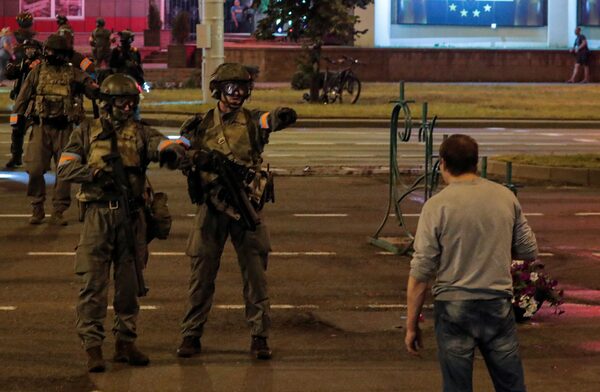 On Monday, a protester died amid clashes in Minsk and scores were injured as police used tear gas, flash-bang grenades and rubber bullets to disperse them. The Interior Ministry said the victim intended to throw an explosive device, but it blew up in his hand and killed him.