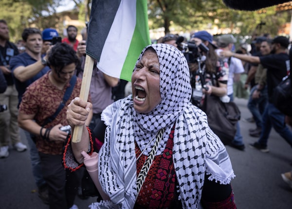 A woman shouts during a protest outside the United Center during the DNC.GORAN TOMASEVIC/The Globe and Mail