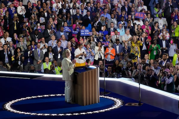 Even the scene inside the hall often suggested that Mr. Biden was fading to a footnote. At a merchandise shop, two T-shirts with Biden designs were crowded out by clothing, stickers and pins featuring the woman now standing in his stead – including “Frat Bros for Harris” buttons.