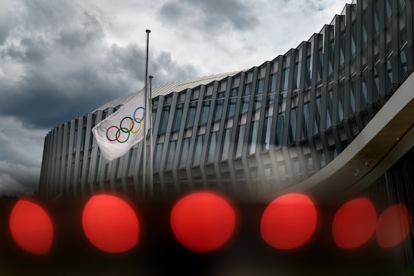 A picture taken on June 9, 2020 shows the Olympic flag flying next to the headquarters of the International Olympic Committee (IOC) in Lausanne.FABRICE COFFRINI/AFP/Getty Images