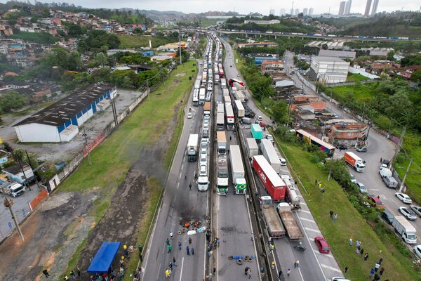 Truckers supportive of President Jair Bolsonaro block a highway to protest his run-off election loss, in the outskirts of Sao Paulo, Brazil, on Nov. 1.Andre Penner/The Associated Press