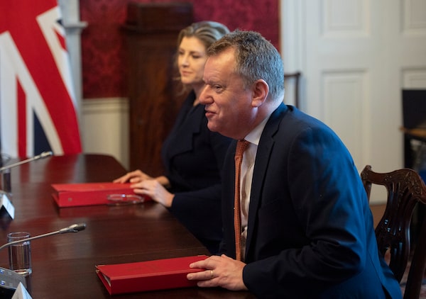 Britain's Minister for the Cabinet Office of the United Kingdom, David Frost, speaks to his EU counterpart Maros Sefcovic, during a meeting, in London on June 9, 2021.Eddie Mulholland/The Associated Press