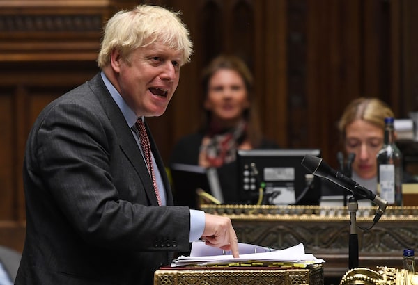 A handout photograph released by the U.K. Parliament shows British Prime Minister Boris Johnson in the House of Commons, in London, on Sept. 30, 2020.JESSICA TAYLOR/AFP/Getty Images