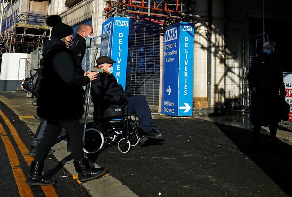 Britons arrive at the Winter Gardens venue, which has been converted for use as a COVID-19 vaccination centre, in Blackpool, on Jan. 25, 2021.JASON CAIRNDUFF/Reuters