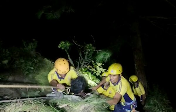 Officials were seen clearing the area of bushes and trees to help with the rescue operation as they pulled up an injured person. Rescuers also retrieved a dead body using ropes before they were taken away on a stretcher.
