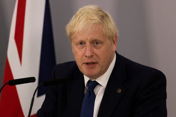 British Prime Minister Boris Johnson speaks at a news conference during the Commonwealth Heads of Government Meeting at Lemigo Hotel, in Kigali, Rwanda, on June 24.POOL/Getty Images
