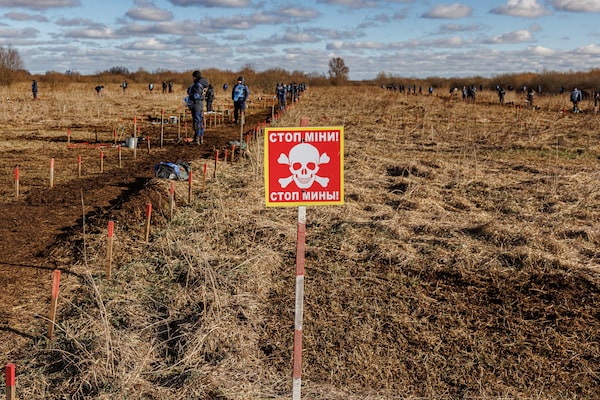 Canada last year donated $2-million to the Halo Trust, which is conducting demining operations and munitions disposal in contaminated areas throughout the country, especially in the south and east, where Russia has been mounting a grinding offensive in recent weeks.