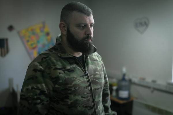 Adam Osmayev, a Chechen fighter, speaks to the Globe via video call from Ukraine eastern frontier in Kyiv, Ukraine on Saturday.ANTON SKYBA/The Globe and Mail