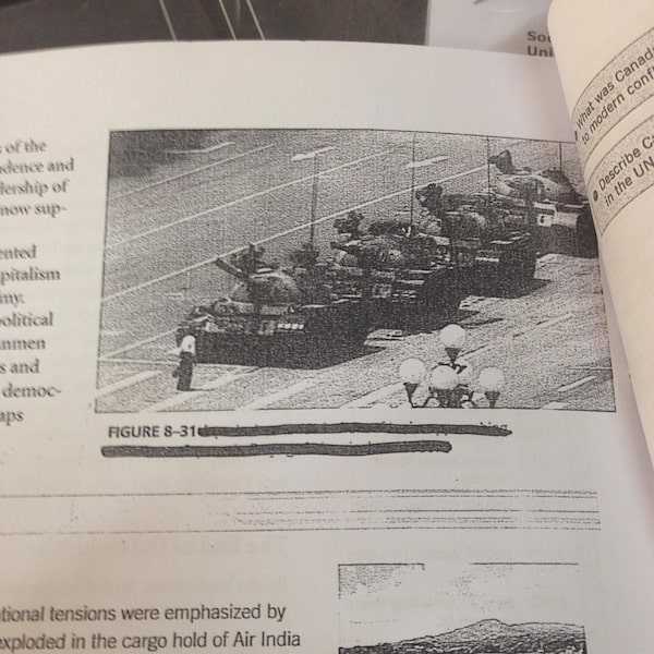 In China, however, that page in the textbook was blocked, and government largely censors the “Tank Man” image.