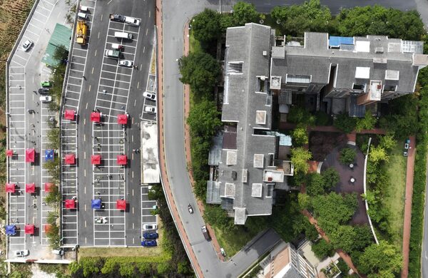 Aerial photo shows a community testing site for COVID-19 in Wudang District of Guiyang, southwest China's Guizhou province, Sept. 5, 2022. A bus transporting people under quarantine crashed, killing 27 and injuring 20.Yang Ying/The Associated Press