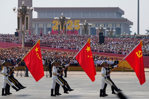 Military personnel take part in a military parade on Wednesday to commemorate the 80th anniversary of Japan's World War II surrender.Ng Han Guan/The Associated Press
