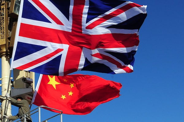 A Union flag is hoisted next to the flag of the People's Republic of China, in front of Tiananmen Gate, in Beijing, on Nov. 8, 2010.FREDERIC J. BROWN/AFP/Getty Images