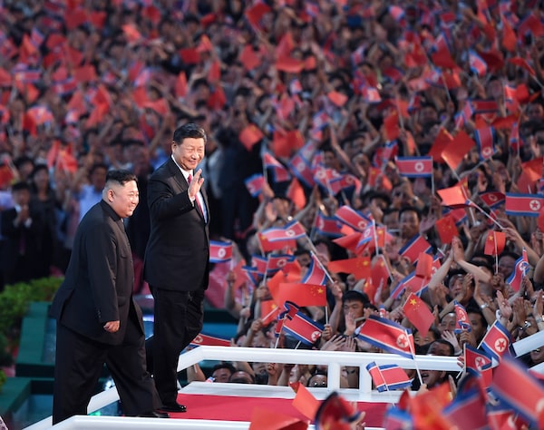 North Korean leader Kim Jong Un attends a 2019 ceremony in Pyongyang with Chinese President Xi Jinping.Yan Yan/Xinhua via AP