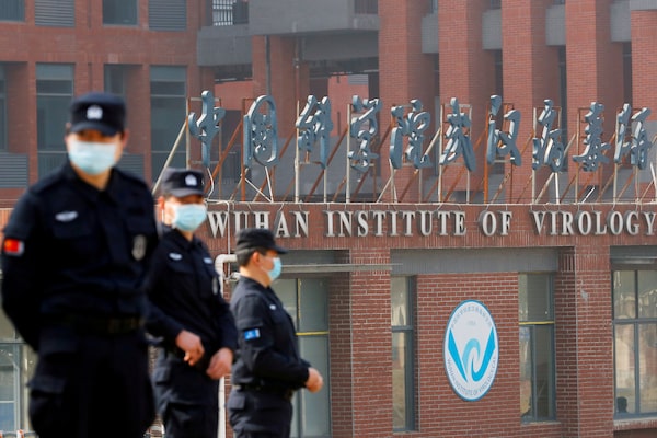 Security personnel keep watch outside Wuhan Institute of Virology during the visit by the World Health Organization (WHO) team tasked with investigating the origins of COVID-19, in Wuhan, Hubei province, China on Feb. 3, 2021.Thomas Peter/Reuters