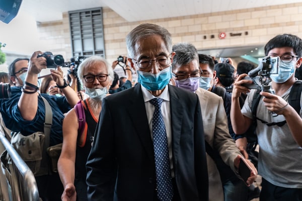 Prominent barrister Martin Lee arrives at the West Kowloon Magistrates' Court on May 18, 2020 in Hong Kong, China. 15 pro-democracy veterans and supporters were charged on May 18 for taking part in one of the last year's banned anti-government protest.Anthony Kwan/Getty Images