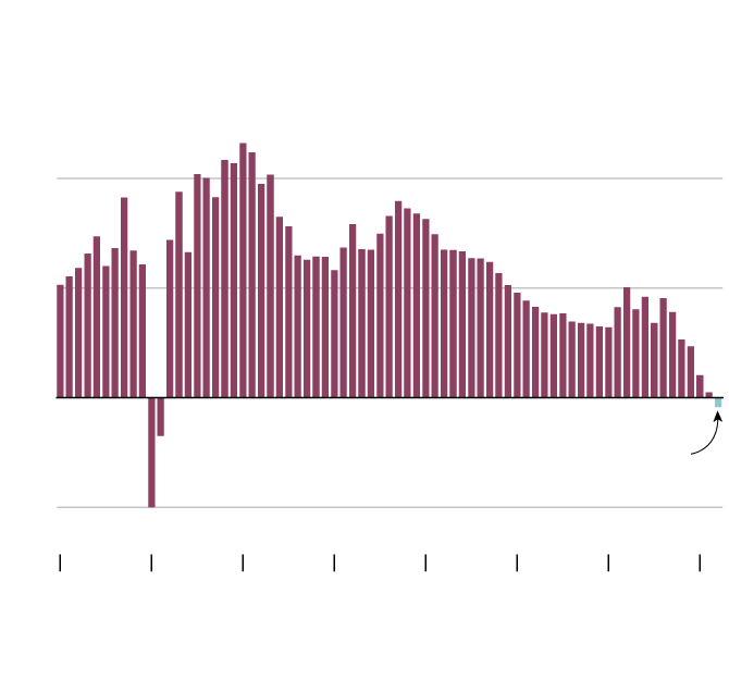 The last time deaths outnumbered births was when China saw widespread famine brought on by Mao Zedong’s Great Leap Forward, an effort to radically reform the country’s then-still-agrarian economy.