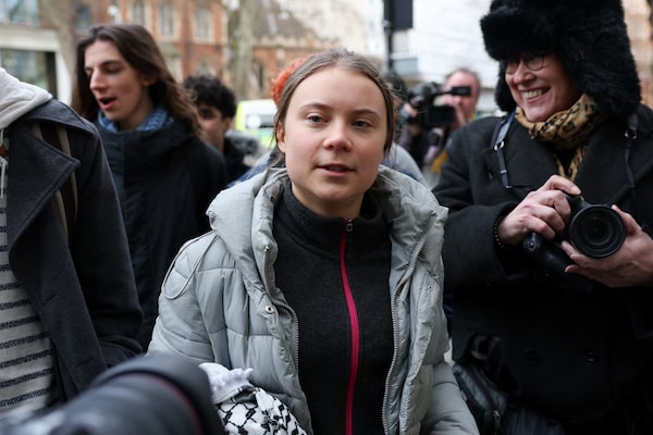 Climate activist Greta Thunberg looks on outside Westminster Magistrates' Court in London on Feb. 2.ISABEL INFANTES/Reuters