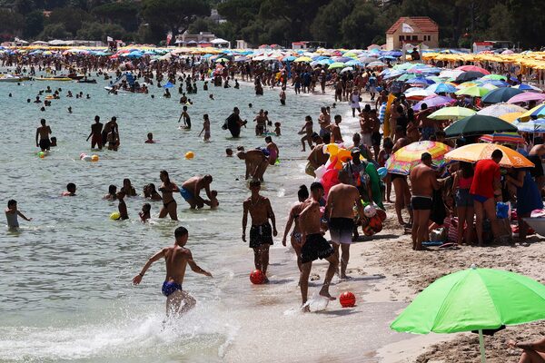 People look for refreshment on the Mondello beach in Palermo, Sicily, during a hot day with temperatures over 40 degrees Celsius, on July 16.Alberto Lo Bianco/LaPresse/The Associated Press