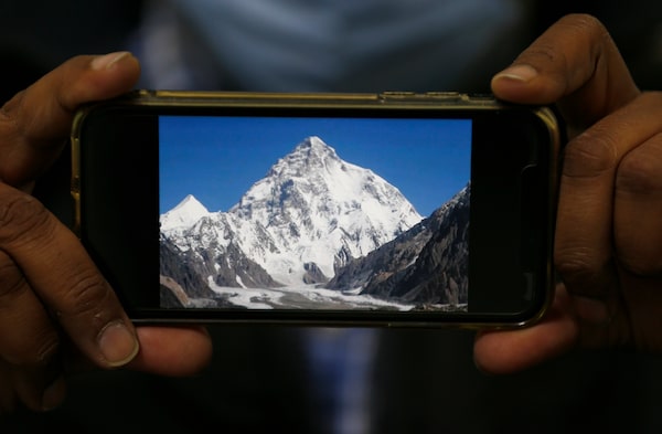 K2, shown on a cellphone in the Pakistani capital of Islamabad, is the second-highest mountain in the world after Everest.Anjum Naveed/The Associated Press