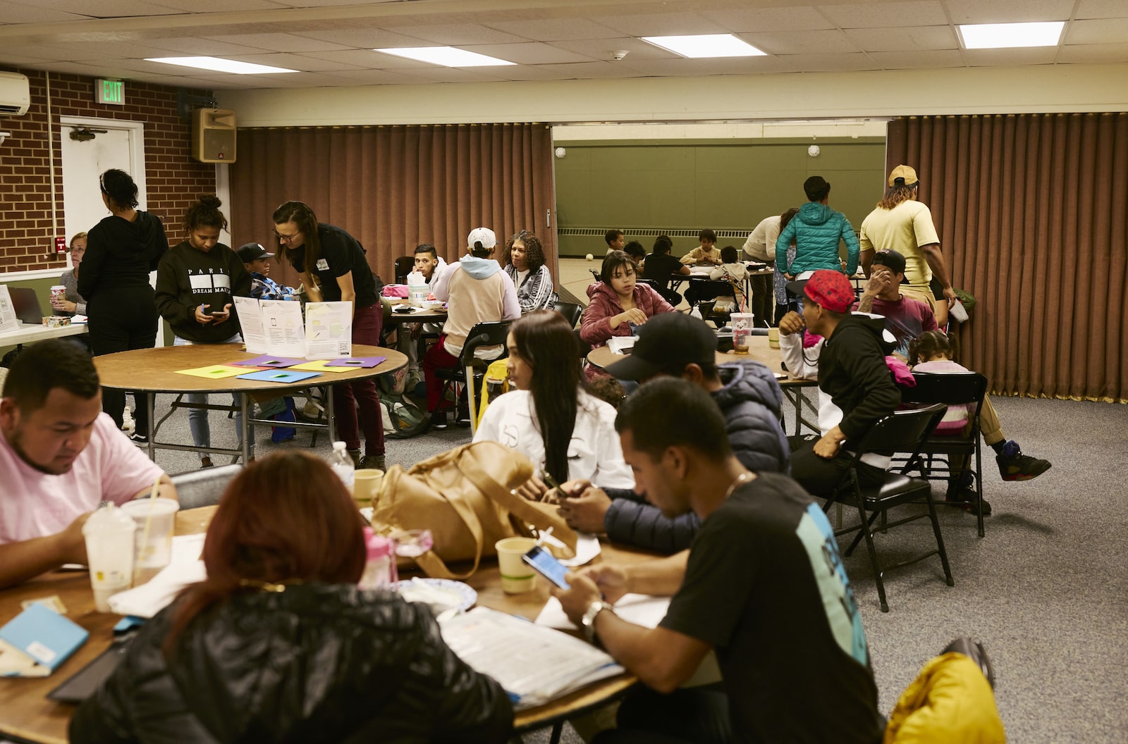 Across Denver, volunteers have helped many migrants assemble the paperwork and navigate the digital systems to submit asylum claims. On a recent afternoon in the city, Roraima Pérez, 55, juggled three cellphones as she worked with the dozens of people who had attended an asylum clinic.