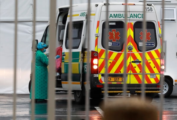 A health worker enters an ambulance outside the COVID-19 field hospital created in the International Convention Centre in Cape Town, South Africa, Monday, June 29. South Africa's hospitals are bracing for an onslaught of patients, setting up temporary wards and hoping advances in treatment will help the country's health facilities from becoming overwhelmed.Nardus Engelbrecht/The Associated Press