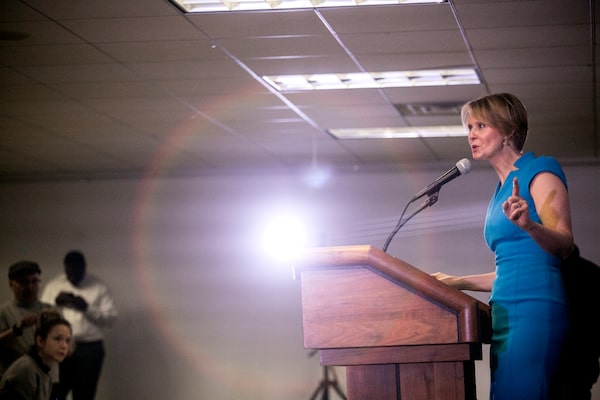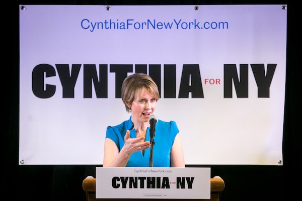 Cynthia Nixon speaks in Brooklyn on Tuesday for her first campaign event as a candidate for New York’s Democratic gubernatorial primary.SAM HODGSON/The New York Times News Service