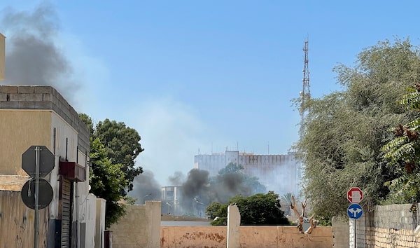 Smoke billows as rival Libyan groups exchange fire in the capital Tripoli, on August 27, 2022.MAHMUD TURKIA/AFP/Getty Images