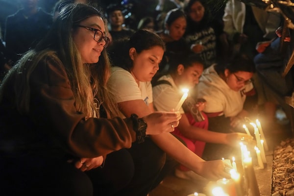 Fans light candles outside the hotel where former One Direction singer Liam Payne was found dead after he fell from a balcony in Buenos Aires, Argentina, on Oct. 16.Natacha Pisarenko/The Associated Press