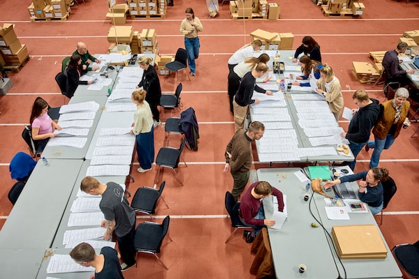 Election workers recount ballots in the Marselisborg Hallen in Aarhus, Denmark.MIKKEL BERG PEDERSEN/AFP/Getty Images